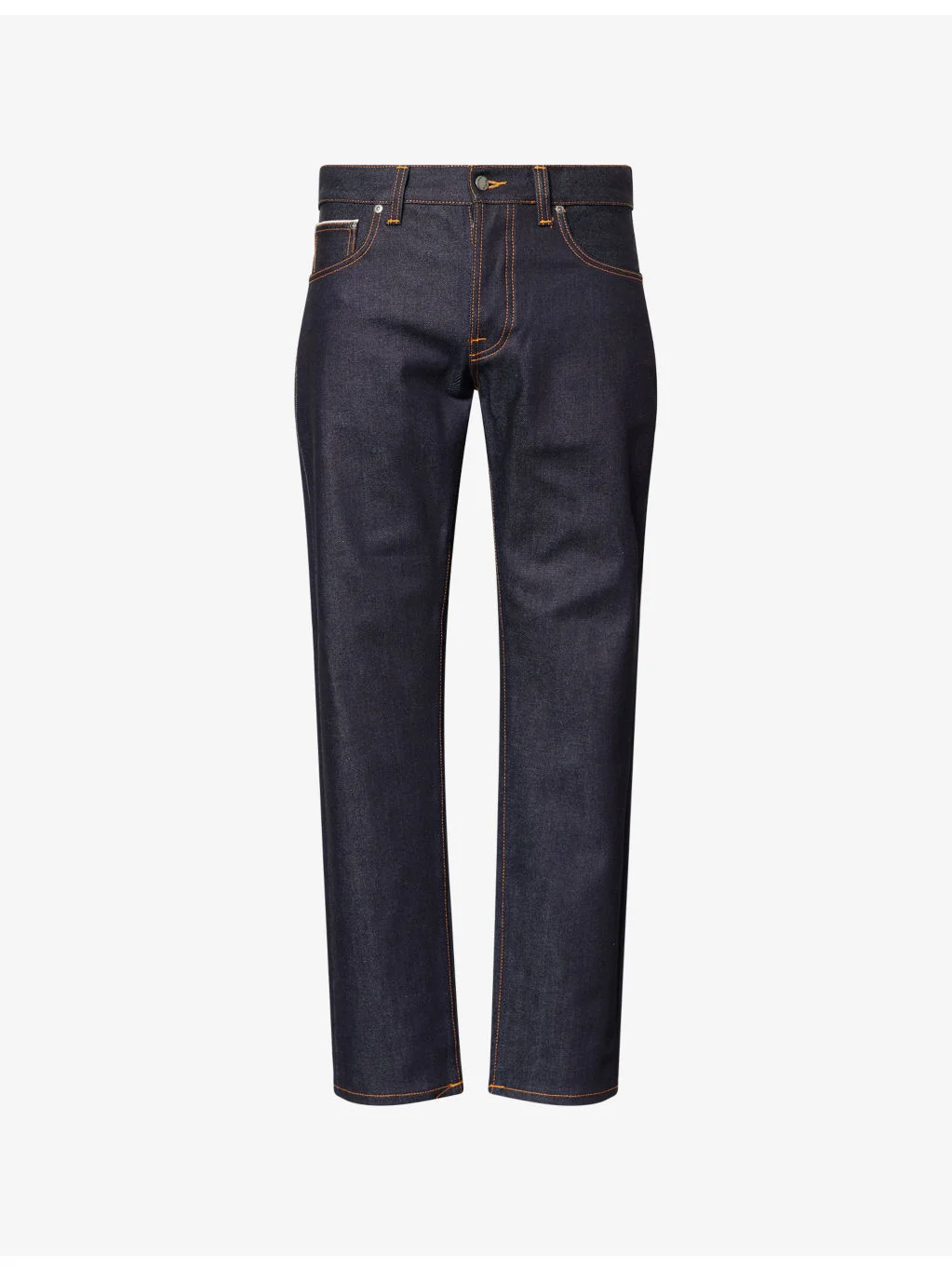PRODUCT DETAILS - Nudie Jeans stretch-denim jeans - 98% cotton, 2% elastane - Exposed button and concealed button-fly fastening at front - Regular fit, low-rise, straight leg, belt loops, five pockets, brand patch at back - Machine wash at 40°C - Size UK 32: rise 11in / 28cm, inside leg 31in / 79cm, leg opening 14in / 36cm - Model is 6ft 2in/1.88m and wears a size UK 32 - Lightweight, slight stretch Ref: R04568158