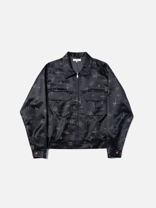 Luxurious jacket with retro vibes crafted in lustrous satin made by mixing Ahisma silk and Fairtrade and organic cotton. Regular fit Size & Fit Model is wearing size: M Model's height: 186 cm / 6’1” Details - Organic and Fairtrade cotton - Indian Ahimsa silk - Lining in recycled polyamide/organic cotton - Corozo buttons - Logo label at pocket - Regular fit 75% Cotton 25% Silk Made in IN This luxurious jacket with great retro vibes in the details is crafted in a supple, lustrous satin fabric. It's made by mixing Ahisma silk and Fairtrade and organic cotton. Ahimsa silk, or peace silk as it's also called, is produced nonviolently. It's a method that allows the silkworms to hatch and then uses the silk fibers inside the cocoons only after the butterfly has left. When you buy this jacket, you can be sure we have paid our share of living wages.