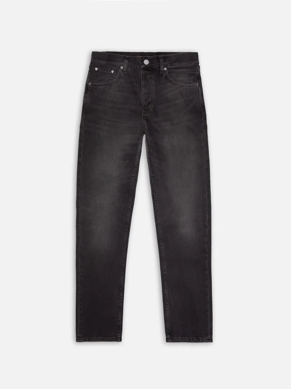 Regular fit jeans with a tapered leg made in organic denim. Size & Fit Model is wearing size: W31" L32" Model's height: 187cm / 6’1” Details - Organic cotton - 12.5 oz. rigid denim - Black thread on all seams - Antique silver trims - Button fly - Jacron patch - Regular tapered fit - Slim leg opening 100% Cotton Made in TN Regular fit jeans with a tapered leg made in organic denim. These jeans have been gently washed which has preserved much of the color while it has rendered subtle and beautiful shade differences at seams. The soft abrasions and wear marks have added mid-grey highlights and revealed the structure of the denim. In all its simplicity these dark grey jeans have something marvelously beautiful to them.