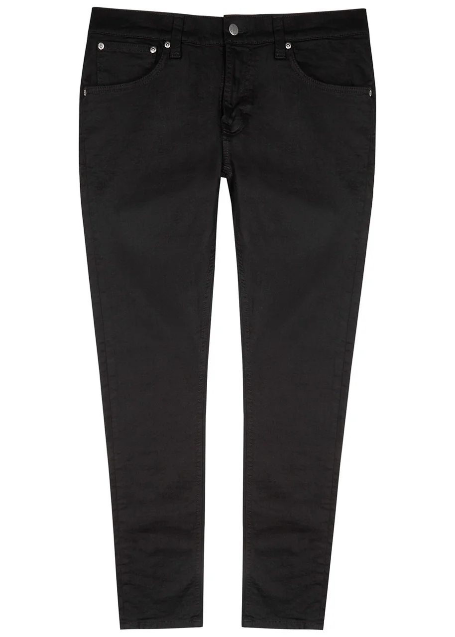 INFO & CARE - Nudie Jeans black stretch-denim jeans - Mid-rise fit skinny cut belt loops five pockets designer plaque faded finish - Partially concealed zip and button fastening at front - Designer wash: Everblack - 99% cotton 1% elastane SIZE & FIT - Machine wash cold inside out to avoid colour transfer - Inside leg length: 32 inches/ 82cm - Front rise: 9 inches/ 23cm - Midweight - Model is 6'2"/ 187cm and wears a size UK W32