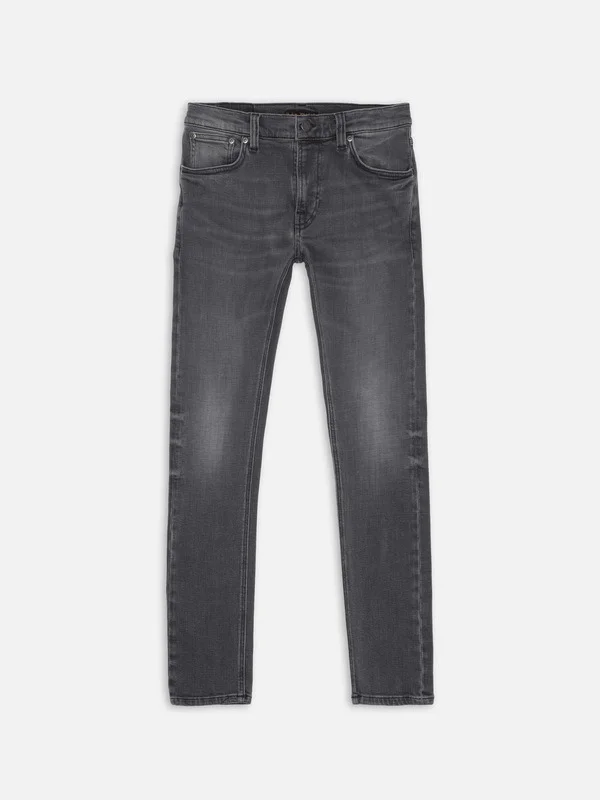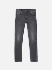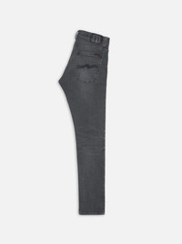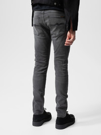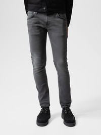 Tight-fit jeans in dark gray wash with contrasting tones. Features textural surface and smooth wear marks for a bold look. Made with organic cotton. Details - Organic cotton - 11 oz. power stretch denim - Black thread at seams - Antique silver trims - Zip fly - Jacron patch - Tight fit - Low waist - Tight Leg - Tight leg opening 99% Cotton 1% Elastane Made in TN Tight-fit jeans in a dark gray wash, featuring contrasting deep gray tones. Crafted from black denim with a smooth yet dynamic texture, these jeans offer both comfort and character. The ring-spun fabric creates a muted salt-and-pepper effect, enhanced by subtle weft slubbiness. Soft abrasions and smooth wear marks add depth, delivering a bold and distinctive monochromatic look.