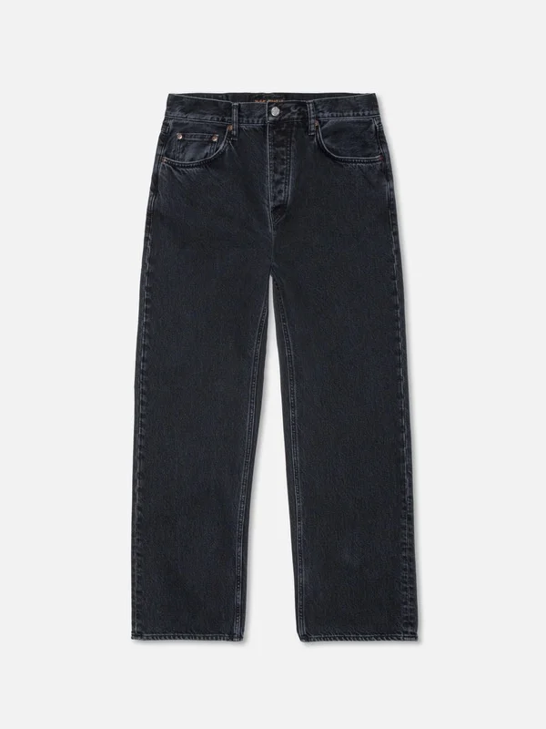 Wide-legged loose-fit jeans in a vintage-like cold-cast black wash with rich marbling texture and subtle bluish highlights. Made from organic cotton. Details - Organic cotton - 12.25 oz. rigid denim - Black thread at seams - Stainless steel buttons - Copper rivets - Button fly - Jacron patch - Loose fit - High waist - Wide leg - Wide leg opening 100% Cotton Made in TN Wide-legged loose-fit jeans in a perfect vintage-like, cold-cast, black wash. Smoothly washed to reveal a range of textures, including a muted yet rich marbling texture, these jeans feature mesmerizing highlights and textural depth. The subtle cold-cast of the denim adds a bluish vibrancy, making this wash one of our best to date.
