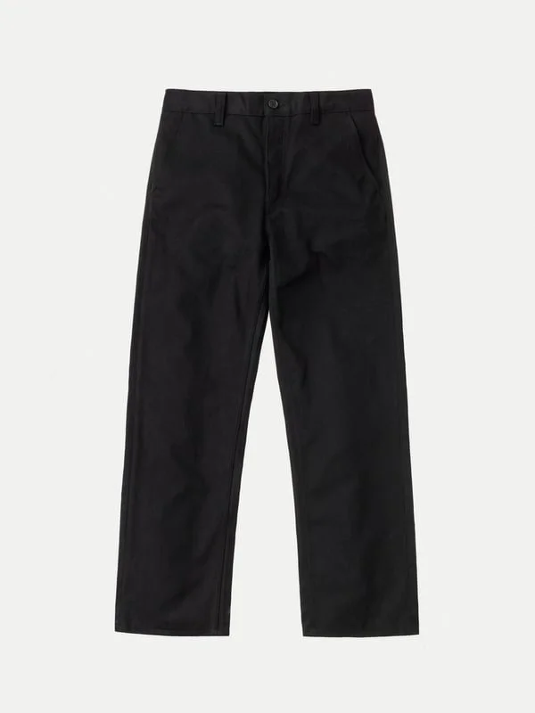 Loose-fit four-pocket worker pants made from a nice mid-weight twill. Made with organic cotton. Size & Fit Model is wearing size: W30" L30" Model's height: 182 cm / 6" Details - Organic cotton - 9.4 oz rigid twill - Matching threads - Corozo buttons - Button fly - Four pockets - Woven patch - Loose fit - High waist - Wide leg - Wide leg opening 100% Cotton Made in TN Loose-fit four-pocket worker pants with a wide leg made in organic cotton twill. These pants are crafted from a medium-weight twill with a pronounced diagonal structure that has a coarse and slightly uneven surface structure. The Tuff Tony Pants is inspired by simplistic workwear pants. As such, they feature two slanted front pockets and two patch-on back pockets. They are sewn with medium thread thickness with a short stitch length that, along with the fabric, gives the pants a well-crafted and vintage-like look.