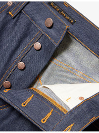 PRODUCT DETAILS - Nudie Jeans denim jeans - 100% cotton - Button and button-fly fastening - Wide leg, high-rise, belt loops, classic five pockets, branded hardware, all-over contrast top stitching, wash effect - Machine wash cold - Made in Italy - Size UK 32/32: rise 12.2in / 31cm, leg length 31.8in / 81cm, leg opening 18.8in / 48cm - Model is 6ft 2in/1.88m and wears a size UK 32 - Midweight, non-stretch Ref: R04541772