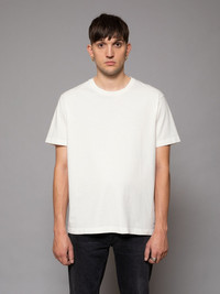 Relaxed fit crew neck tee in organic cotton jersey. Details - Organic cotton - Pigment dyed - Relaxed fit 100% Cotton Made in PT This everyday crew neck tee is plain and perfect. It's made in a clean, crisp jersey, knitted with organic cotton yarns. A stonewash gives the kind of lived-in outlook that we think goes so well with denim. All colorways except for off-white are pigment dyed and will continue to fade with time as you wear and wash it.