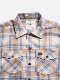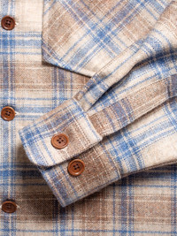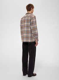 Outdoor shirt crafted in a plaid check made with recycled wool and polyester. Relaxed fit. Size & Fit Model is wearing size: M Model's height: 185 cm / 6’0'' Details - Recycled wool - Recycled polyester - External logo label - Corozo buttons - Relaxed fit PL 20%, Wool 75%, AF 5% Made in TR Shirt crafted in a plaid check with warm, earthy shades lit up by a clear blue. The weave mixes recycled wool and polyamide, giving us a sturdy, outdoorsy quality with a rough texture and dry hand feel. The sleeves are lined with recycled polyester lining. When you buy this shirt, you can be sure we have paid our share of living wages for it.