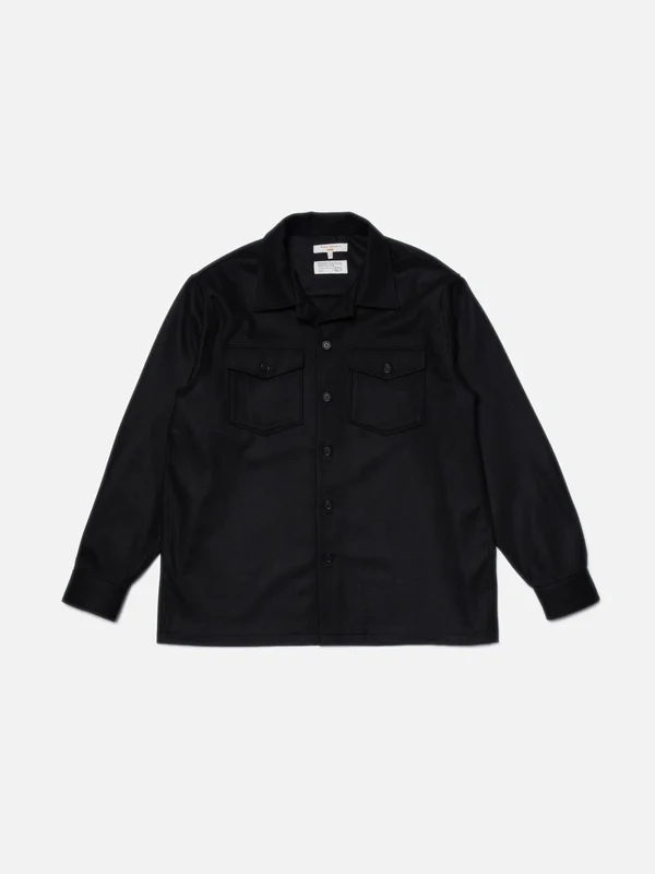 Unlined overshirt crafted in a light, soft weave with excellent drape and luster made with recycled fibers. Regular fit Details - Recycled wool - Recycled polyester - Recycled polyamide - External logo label - Corozo buttons - Regular fit 60% Wool, 35% Polyester, 5% PA Made in TR Unlined overshirt shirt crafted in a light weave that mixes recycled fibers from wool, polyester, and some polyamide. This gives a light fabric with a soft handle and excellent drape and luster. When you buy this shirt, you can be sure we have paid our share of living wages.