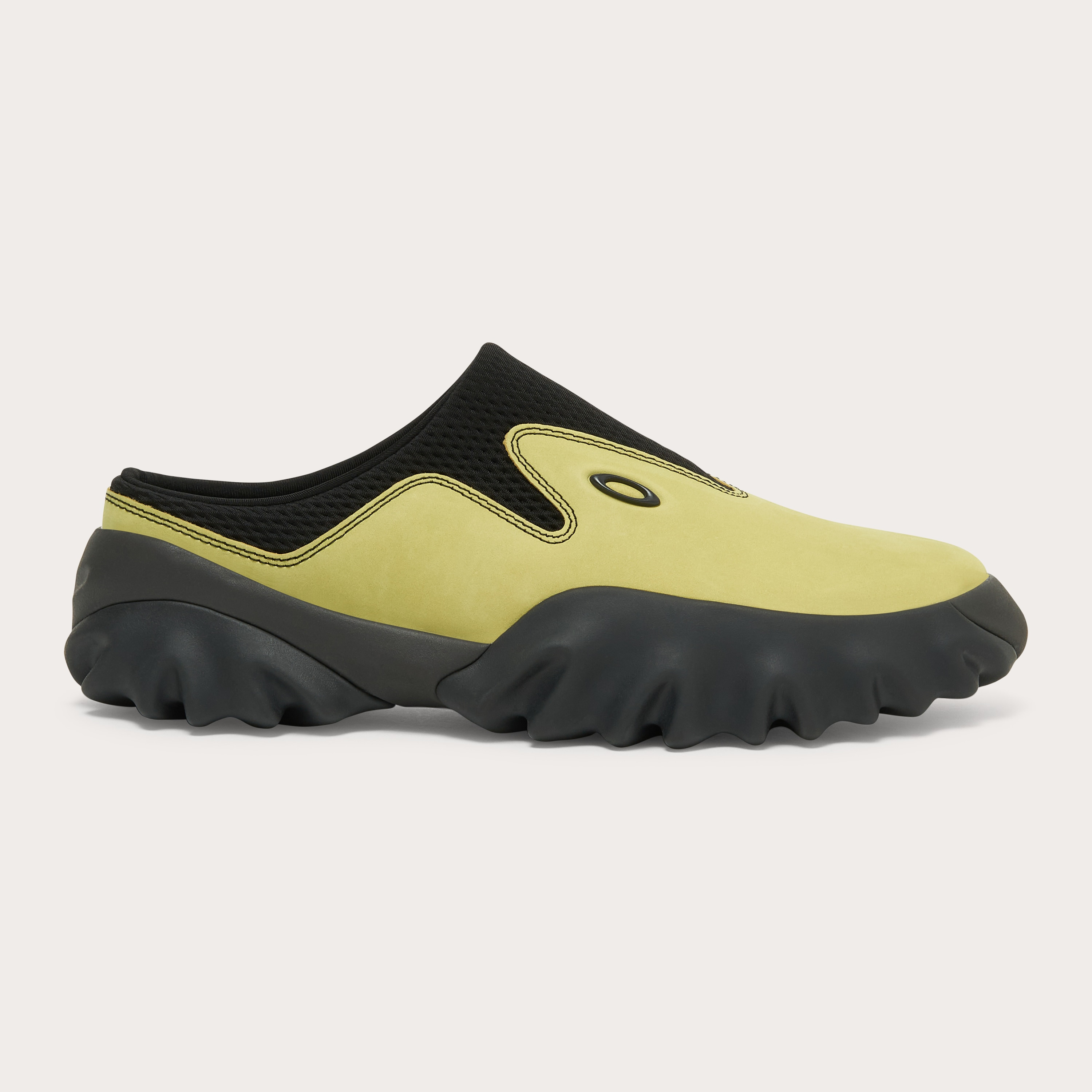 CODE: FOF100637-BF9 Building off the original Oakley® Chop Saw, this metamorphosis celebrates evolution with its mule version and diverse material compositions. Displaying the same fierce visual traits from the original shoe design, the Chop Saw Mule is a symbol of chiseling ease; no heel back, no problem. Featuring a unique padded neoprene collar allowing for non-isometric stretch that conforms to contours, lush materials for the upper and a prominent jagged rubber sole, this is another manifestation of Oakley Factory Team’s non-conformism. Always in season, the soft-touch celery suede leather upper is adorned with a black 3D Ellipse logo altogether stitched to the black mesh and Lycra® collar for all-day comfort. Proudly carrying cues of its lineage, this Oakley Factory Team Chop Saw Mule sits on a black caviar toothed outsole. Highly functional and nimble, this shoe strikes the perfect balance between fashion and function.This product is excluded by any promo-code or promotions. Material Composition - Upper composition: 69% leather, 31% polyester - Lining composition: 100% Polyester