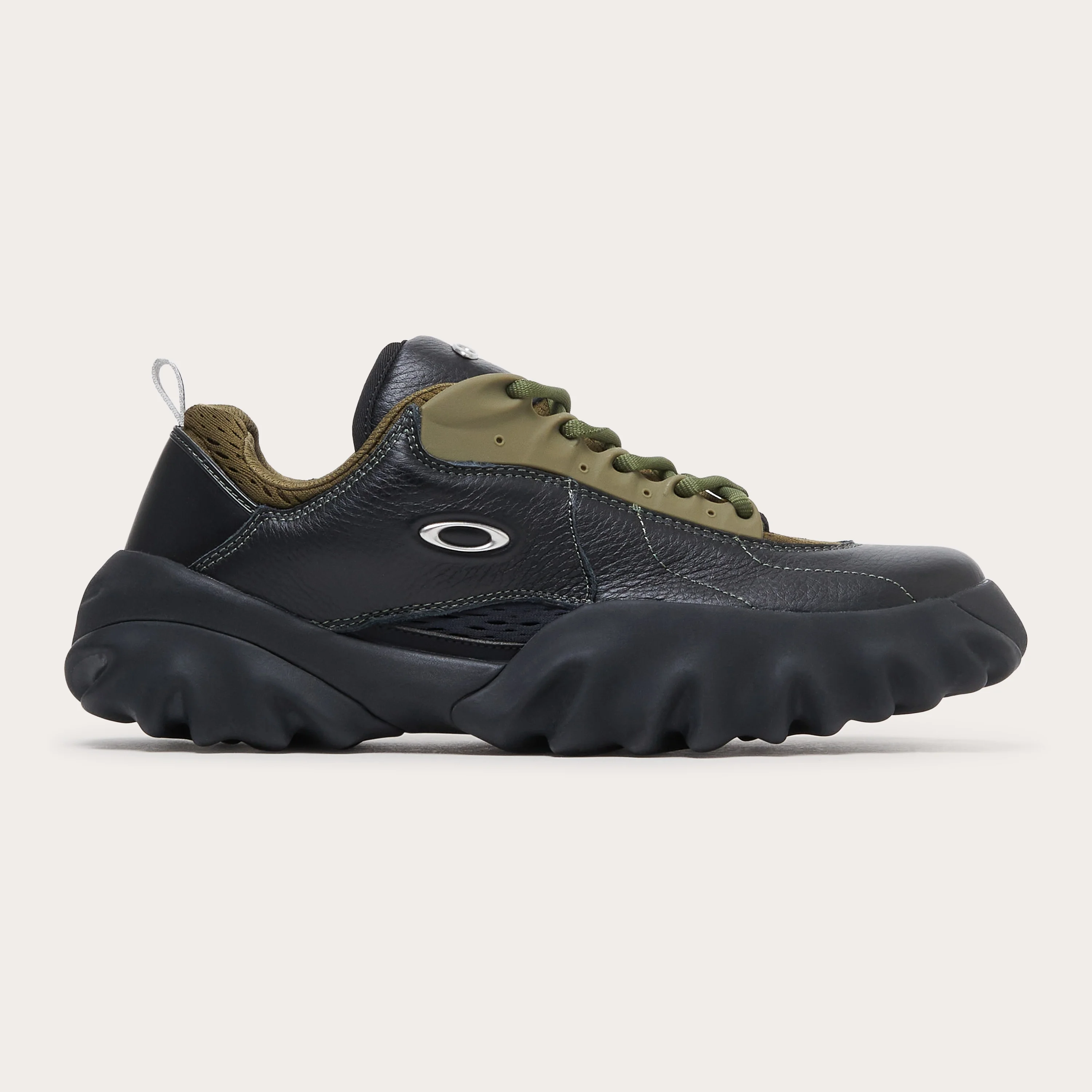 CODE: FOF100715-02W Sitting next to nothing when released decades ago, the Oakley Factory Team Chop Saw shines a new light on this unforgettable silhouette. With its brilliant support and furious grip, it features a brawly personality - Thanks to the eye-catching serrated eyelet plaque and sole that’s providing sturdiness to the silhouette while fusing form, and function. Breaking from the pack to explore different materiality and color-combinations, the Oakley Factory Team sees no limit to what Chop Saw can cut through. Fusing earthy tones with fearless leather overlays and detailing, this Oakley Factory Team Leather Chop Saw is built to back your boldest looks—no apologies needed.This product is excluded by any promo-code or promotions. Material Composition - Upper Composition: 69% Calf Leather, 31% Polyester - Lining Composition: 100% Lycra - Outsole Composition: 50% EVA, 50% Rubber tread