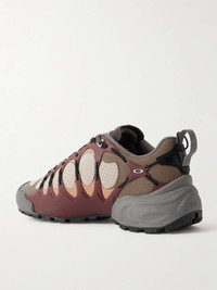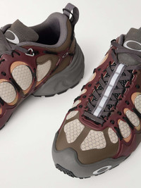 Oakley Factory's 'Ibex' sneakers are made from panels of brushed synthetic material and mesh and have a bold TPU exoskeleton that's tied together with black laces. A futuristic take on trail styles, they're set on 'O-Grip' outsoles that extend over the heels and toecaps. Size & Fit - US 4 = UK 3/ EU 36 - US 4.5 = UK 3.5/ EU 36.5 - US 5 = UK 4/ EU 37 - US 5.5 = UK 4.5/ EU 38 - US 6 = UK 5/ EU 38.5 - US 7 = UK 6/ EU 40 - US 7.5 = UK 6.5/ EU 40.5 - US 8 = UK 7/ EU 41 - US 8.5 = UK 7.5/ EU 42 - US 9 = UK 8/ EU 42.5 - US 9.5 = UK 8.5/ EU 43 - US 10 = UK 9/ EU 44 - US 10.5 = UK 9.5/ EU 44.5 - US 11 = UK 10/ EU 45 - US 11.5 = UK 10.5/ EU 45.5 - US 12 = UK 11/ EU 46 - US 12.5 = UK 11.5/ EU 47 - US 13 = UK 12/ EU 47.5 - US 14 = UK 13/ EU 49 - Packaging reflects both men’s and women’s sizing Details & Care - Multicoloured TPU, beige and black mesh, army-green and orange brushed synthetic material - Lace-up - Style number: BDF24S04004128RD21 - Oakley Factory follows its own size guide, therefore the size stated on the box will differ from the one provided in our size chart. To receive your correct fit, please refer to Size & Fit notes