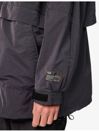 PRODUCT DETAILS - Oakley shell jacket - 85% polyester, 15% polyamide; lining 100% polyester - Zip fastening - Regular fit, funnel neck, drawstring hood, long sleeves, brand patch at sleeve, reflective logo print at front, pockets at front, drawstring hem - Machine wash cold - Size medium: length 29in / 74cm, chest 56in / 142cm - Model is 6ft 2in/1.88m and wears a size medium - Lightweight, non-stretch Ref: R04445845