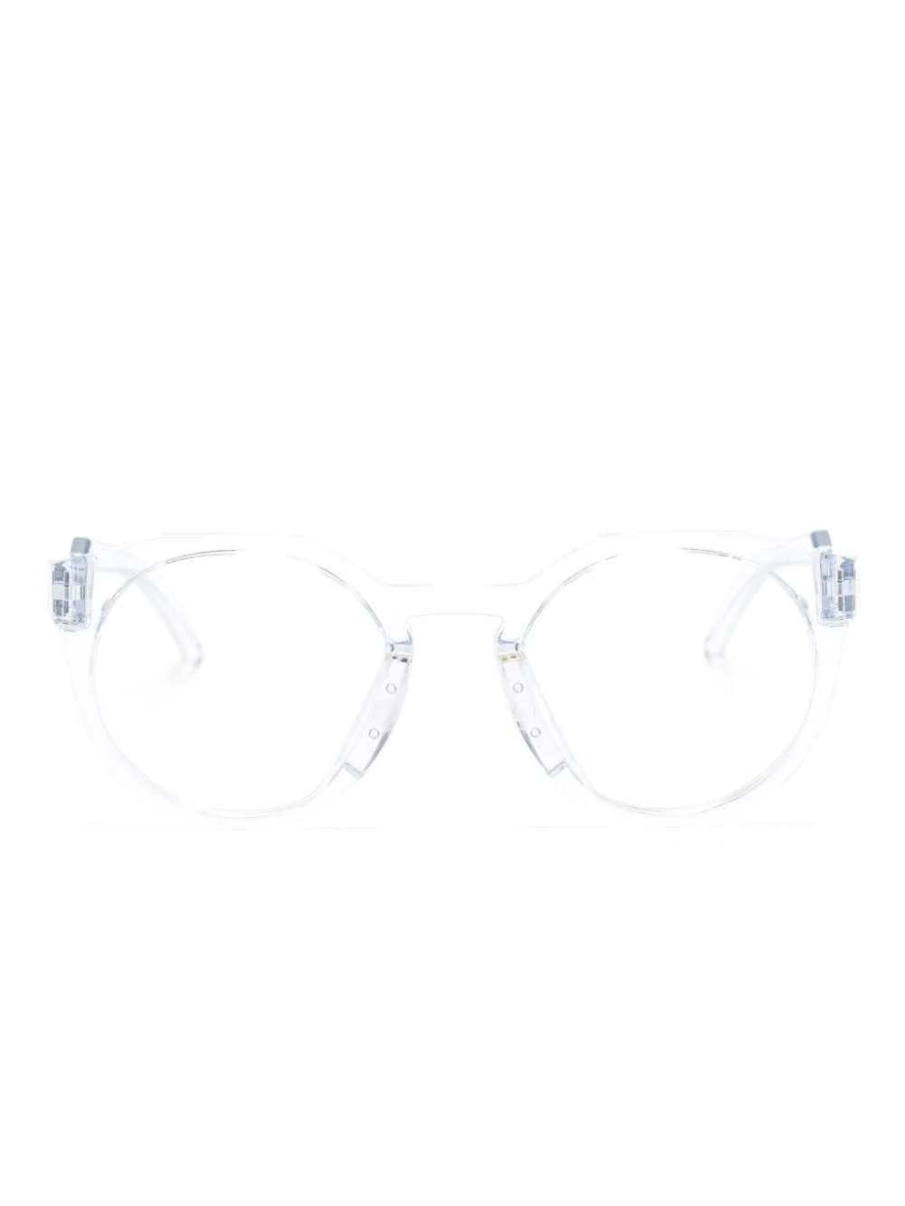geometric-frame glasses Highlights - Transparent frame - Acetate - Geometric frame - Clear lenses - Embossed detailing at the arm - Sculpted arms with curved tips - These glasses come with a protective case. - All glasses from farfetch are sold as non-prescription frames. Made in Italy Composition Acetate 100% SIZE & FIT Measurement Arm Length 5.51 in(14 cm) Bridge Width 0.82 in(2.1 cm) Lens Diameter 1.96 in(5 cm) Total Width 5.11 in(13 cm)