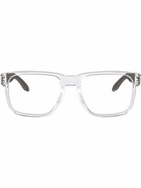 Holbrook RX square glasses clear plastic square transparent frame clear lenses straight arms curved tips These glasses come with a protective case All glasses from FARFETCH are sold as non-prescription frames Made in United States Composition Plastic 100% SIZE & FIT Measurement Arm Length 5.39 in(13.7 cm) Bridge Width 0.7 in(1.8 cm) Lens Diameter 2.12 in(5.4 cm)