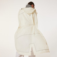 CODE: FOA407460-68S Functionality meets design in this comfy boxy fit parka constructed to maximize your outdoor performances. Made from lightweight nylon with a visor-shaped hood that can be adjusted to fit using the cord stoppers, the jacket is designed with a transparent membrane that creates an effective barrier against the wet, with critically taped seams at the hood and shoulders and a zip guard to provide further protection against the rain and damp. The drawcords at the shoulders, waist and hem allow you to tweak the fit to taste, while the split hem at the back provides extra ease of movement. Useful flap pockets on the front. Additional Details - Light nylon hooded parka - frontal zip closure - Visor shaped hood with front and back cord stoppers - Cord regulation at shoulder, waist and bottom hem - Frontal flap pockets - Front and back side seam with cotton binding - back split at bottom hem - Back leash holder - Screen printed reflective logo on the left chest and on the centre back - Boxy fit Performance: transparent membrane as water barrier: 5k - Functional drawcords for regulation - Critically tape (hood & shoulders) - Zip guard for waterproofness Material Composition - 100% Nylon
