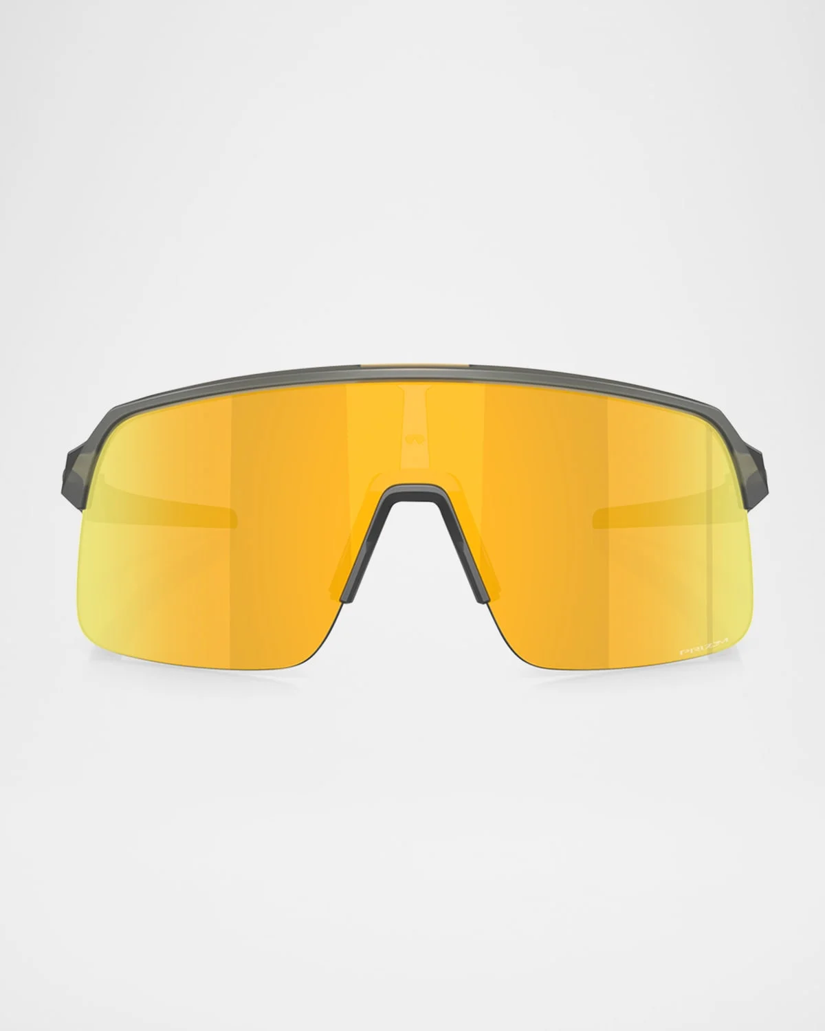 - Experience the practicality and performance of oakley oo9463 sunglasses. These shield-shaped shades are designed to provide comprehensive coverage for your eyes, making them ideal for both active pursuits and everyday use. The standard design ensures a comfortable fit, while the high-quality lenses deliver reliable protection against harmful uv rays. Perfect for those who value both function and form in their eyewear. Oo9463 features a mt olive ink color on a rectangular frame with prizm 24k lenses. Oakley plutonite lenses are impact resistant and 100% uv protection (uva, uvb, uvc, and blue light up to 400nm). Prizm 24k everyday intensify color vividness and contrast, creating a warmer and more vibrant environment. Light transmission: 11%. Each pair of sunglasses come with a cleaning cloth and case to clean and protect your sunglasses from scratches and damage. To protect your eyes from harmful uv rays, these sunglasses include lenses that are coated with 100% uv protection. - Oakley "oo9463" shield sunglasses in plastic - Lens/bridge/temple (in mm): - 0-139-138 - Solid-color lens - Saddle nose bridge - Logo on the temples - Plastic - Spot clean - 100% UVA/UVB protection - Made in USA - Proposition 65 warning for California residents