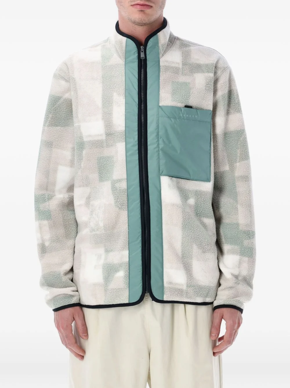 Off-Slope Mountain fire sherpa jacket Highlights - White, multicoloured - Geometric pattern - Chest pocket - Zip fastening - Black binding trim - High neck Imported Composition Polyester 100% Washing instructions Read Manufacturer Guidelines