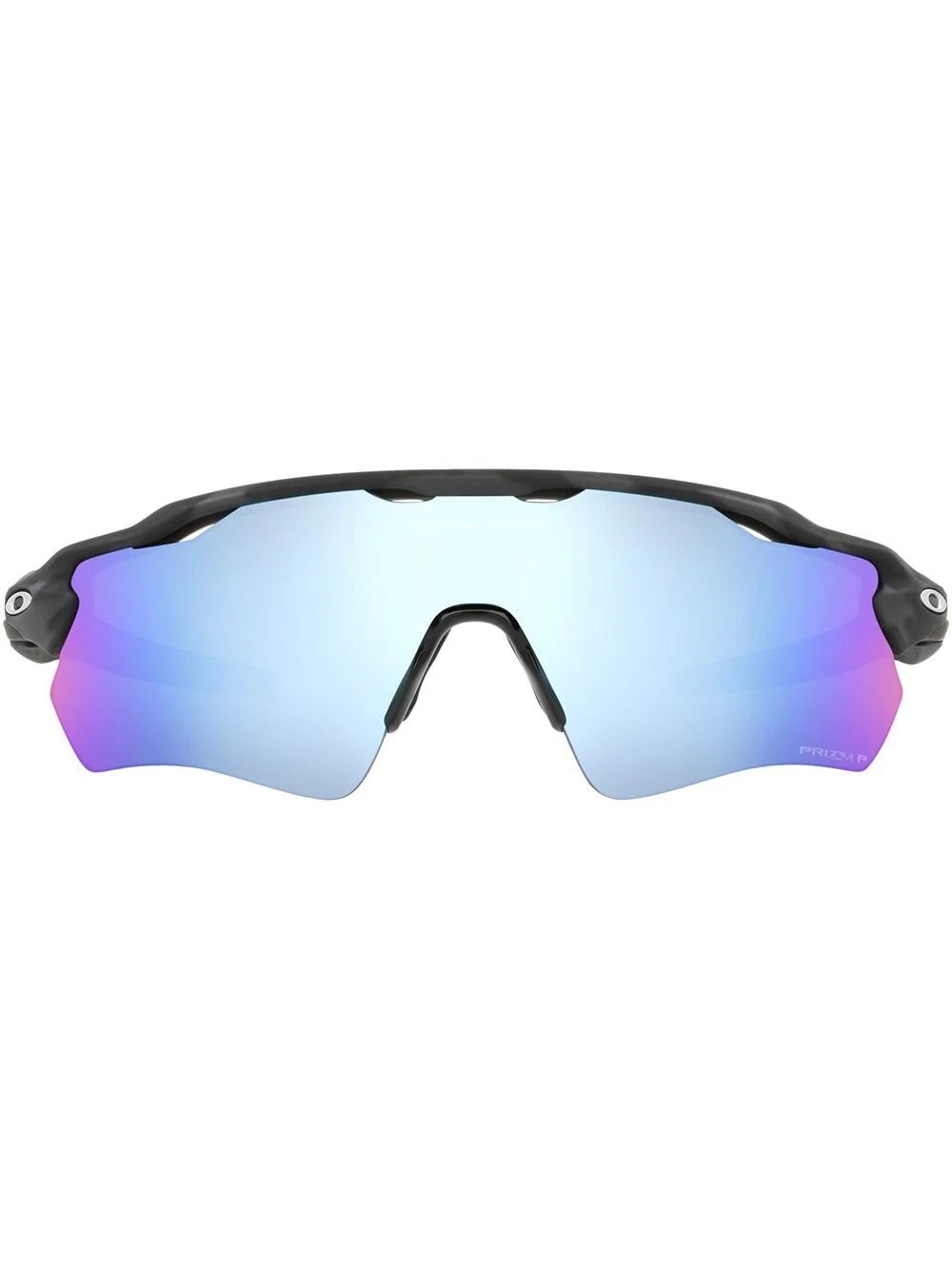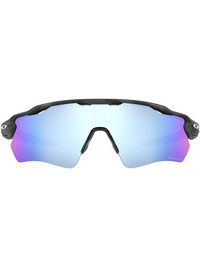 Radar EV Path band sunglasses black acetate mirrored lenses logo embellishment These glasses come with a protective case. Made in United States Composition Acetate 100% SIZE & FIT Measurement Arm Length 5.03 in(12.8 cm) Bridge Width 5.43 in(13.8 cm) Lens Diameter 1.49 in(3.8 cm)