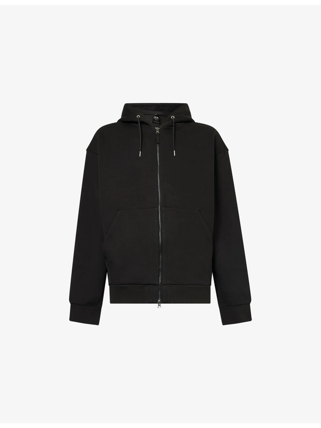 PRODUCT DETAILS - Oakley cotton hoody - 60% cotton, 40% polyester - Zip fastening - Relaxed fit, drawstring hood, long sleeves, embroidered logo at chest, kangaroo pocket at front, two-way zip - Machine wash at 30°C - Model is 6ft 2in/1.88m and wears a size medium - Midweight, stretchy Ref: R04581360