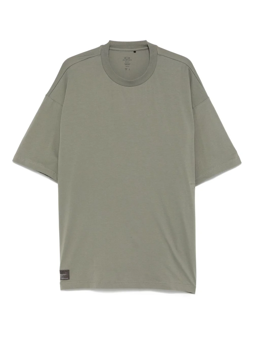 logo-embroidered T-shirt Highlights - Olive green - Side zip-fastening pocket - Crew neck - Short sleeves - Straight hem Imported Composition Cotton 94%, Elastane 6%
