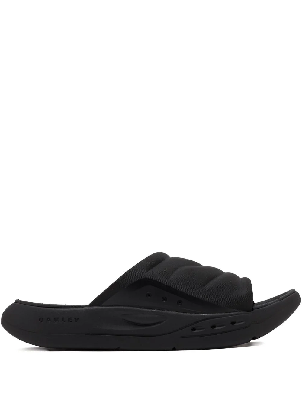 Studio embossed-logo slides Highlights - Black - Embossed logo - Moulded footbed - Open toe - Signature logo - Perforated detailing Imported Composition Outer: Polyester 85%, Polyurethane 15% Lining: Nylon 82%, Spandex/Elastane 18% Sole: Polyethylene vinyl acetate (PEVA) 80%, Rubber 20%