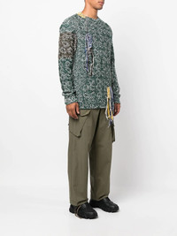 Astral crew-neck jumper sea green/multicolour wool blend knitted construction crew neck patchwork detailing fringe detailing drop shoulder long sleeves straight hem Made in Italy Composition Wool 50%, Cotton 37%, Polyamide 13% SIZE & FIT Model measurements Height 6 ft 2 in(1.88 m) Bust/Chest 36.61 in(93 cm) Hips 37.79 in(96 cm) Waist 28.74 in(73 cm) Measurement CHEST 39.37 in(100 cm) LENGTH 27.95 in(71 cm) SLEEVE LENGTH 26.37 in(67 cm) Shoulder Width 18.5 in(47 cm) FittingInformation This piece fits true to size. We recommend you get your regular size Cut for a relaxed fit Made with a heavyweight fabric Washing instructions Dry Clean Only