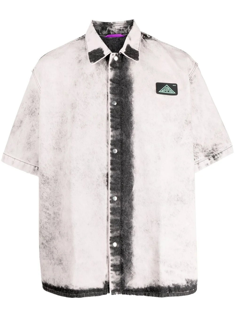bleach-effect short-sleeve shirt light grey/black cotton acid wash bleached effect classic collar front button fastening logo patch at the chest short sleeves straight hem Made in Italy Composition Cotton 100% SIZE & FIT Model measurements Height 6 ft 3 in(1.9 m) Bust/Chest 34.64 in(88 cm) Hips 36.61 in(93 cm) Waist 27.55 in(70 cm) FittingInformation Designed for a boxy fit, intended for a loose fit throughout Made from a midweight non-stretch fabric This piece fits true to size – take your usual size Washing instructions Hand Wash