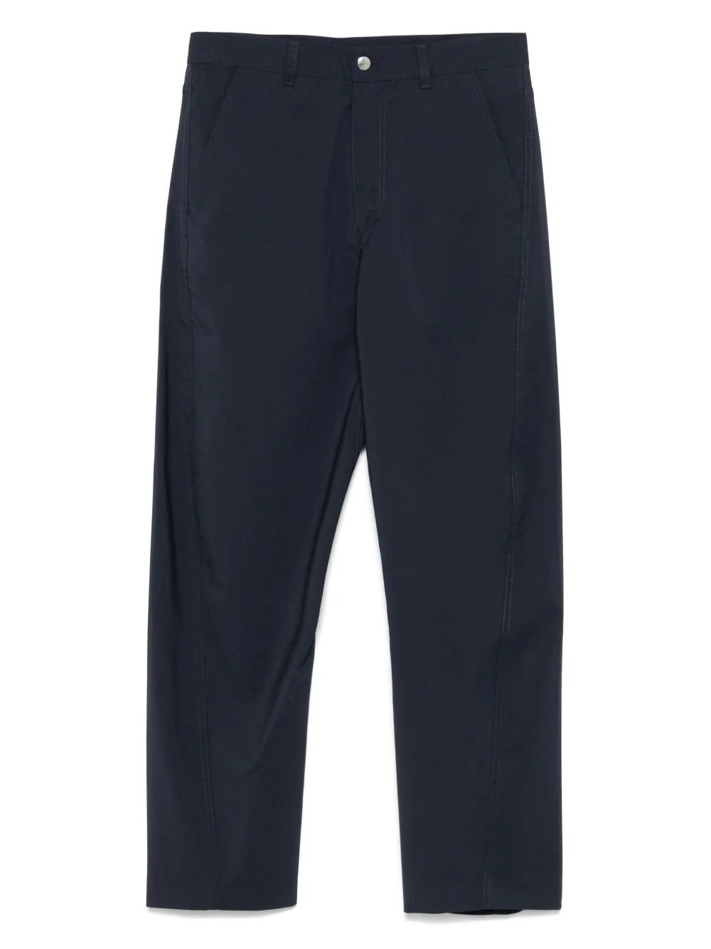 Cortes trousers Highlights - Navy blue - Concealed fly and button fastening - Two side slash pockets - Two rear patch pockets - Belt loops Made in Italy Composition Outer: Polyester 54%, Virgin Wool 44%, Elastane 2% Lining: Cotton 100%