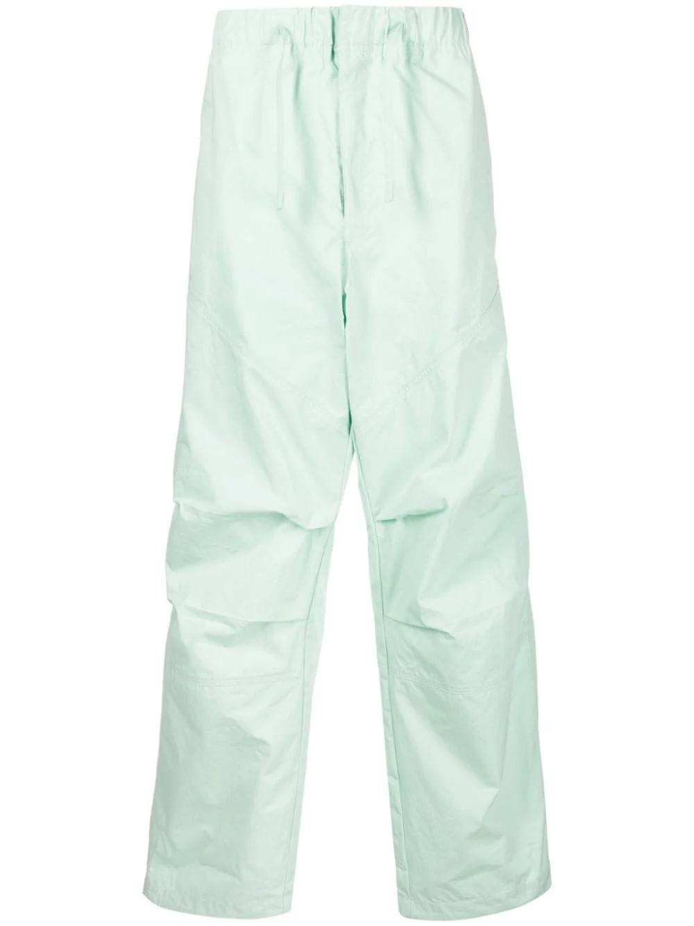 drawstring-waist straight-leg trousers Highlights - Light green - Cotton/virgin wool - Drawstring fastening - Straight leg - Two side slit pockets Imported Composition Cotton 100% Lining: Cupro 100% Outer: Virgin Wool 100% SIZE & FIT Model measurements Height 6 ft 2 in(1.87 m) Bust/Chest 33.07 in(84 cm) Hips 35.43 in(90 cm) Waist 26.77 in(68 cm) FittingInformation Designed with a wide leg, offering a loose and roomy fit The internal drawstring at the hem allows for fitted preferences at the ankle Made from a midweight non-stretch fabric This piece fits true to size – take your usual size Washing instructions Dry Clean Only