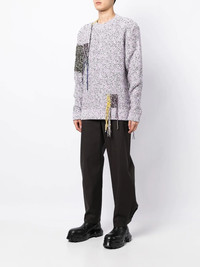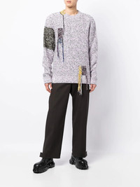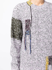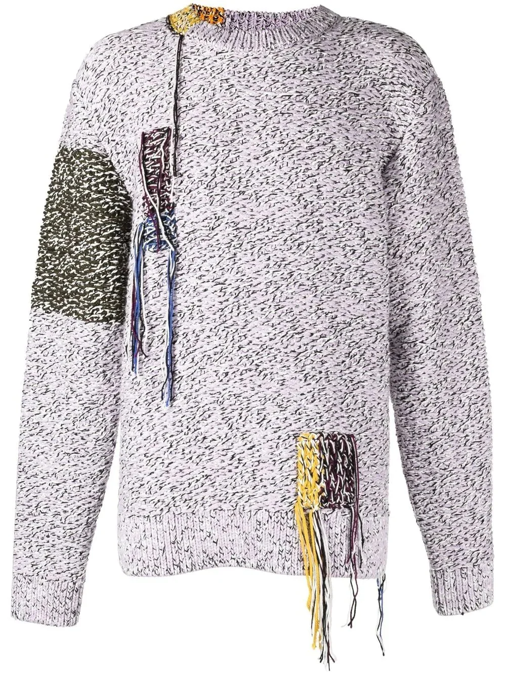 fringed marl-knit jumper light purple/multicolour wool-cotton blend marl knit fringe detailing contrast stitching ribbed edge crew neck long sleeves straight hem Made in Italy Composition Wool 50%, Cotton 37%, Polyamide 13% SIZE & FIT Model measurements Height 6 ft 2 in(1.87 m) Bust/Chest 34.25 in(87 cm) Hips 36.22 in(92 cm) Waist 29.52 in(75 cm) Measurement CHEST 38.58 in(98 cm) SLEEVE LENGTH 25.98 in(66 cm) LENGTH 27.55 in(70 cm) Shoulder Width 18.11 in(46 cm) FittingInformation This piece fits true to size. We recommend you get your regular size Cut for a loose fit Made with a heavyweight fabric Washing instructions Dry Clean Only