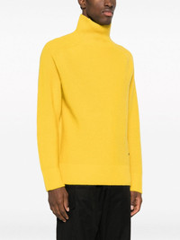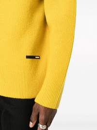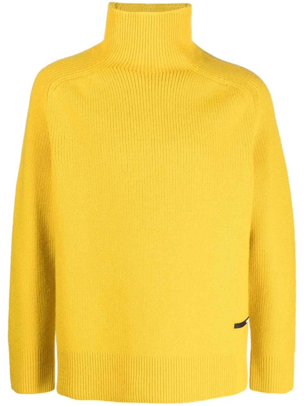 high-neck wool jumper Highlights - Lemon yellow - Wool - Ribbed knit - Logo patch to the front - Long sleeves - High neck - Straight hem Made in Italy Composition Wool 100% SIZE & FIT Model measurements Height 6 ft 0 in(1.84 m) Bust/Chest 36.22 in(92 cm) Hips 35.43 in(90 cm) Waist 26.77 in(68 cm) FittingInformation Designed for a regular fit, offering a comfortable loose fit throughout the body Made with a midweight knit, this piece offers some stretch This piece fits true to size – take your usual size Washing instructions Hand Wash