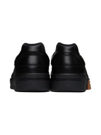 Low-top paneled buffed calfskin sneakers in black. · Lace-up closure · Perforated detailing at padded tongue · Padded collar · OrthoLite® footbed · Mesh lining · Logo-embossed textured rubber midsole · Textured rubber outsole Supplier color: Black