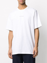 logo floral print T-shirt White cotton blend logo floral print T-shirt from OAMC featuring a printed logo, a round neck, short sleeves and a floral print. Imported Composition Silk 100%, Cotton 100% SIZE & FIT Model measurements Height 6 ft 2 in(1.87 m) Bust/Chest 38.18 in(97 cm) Hips 36.61 in(93 cm) Waist 29.13 in(74 cm) FittingInformation This piece fits true to size. We recommend you get your regular size Cut for a relaxed fit Made with a mid-weight fabric Washing instructions Hand Wash