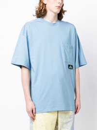 logo-patch organic-cotton T-shirt Highlights - Sky blue - Organic cotton - Logo patch to the front - Crew neck - Drop shoulder - Short sleeves - Chest patch pocket - Straight hem Imported Composition Body: Organic Cotton 100% SIZE & FIT Model measurements Height 6 ft 2 in(1.87 m) Bust/Chest 36.22 in(92 cm) Hips 37.79 in(96 cm) Waist 28.34 in(72 cm) FittingInformation Designed to be unstructured, offering a loose fit throughout Made from a lightweight non-stretch fabric, this piece offers minimal elasticity when worn This piece fits true to size – take your usual size Washing instructions Machine Wash