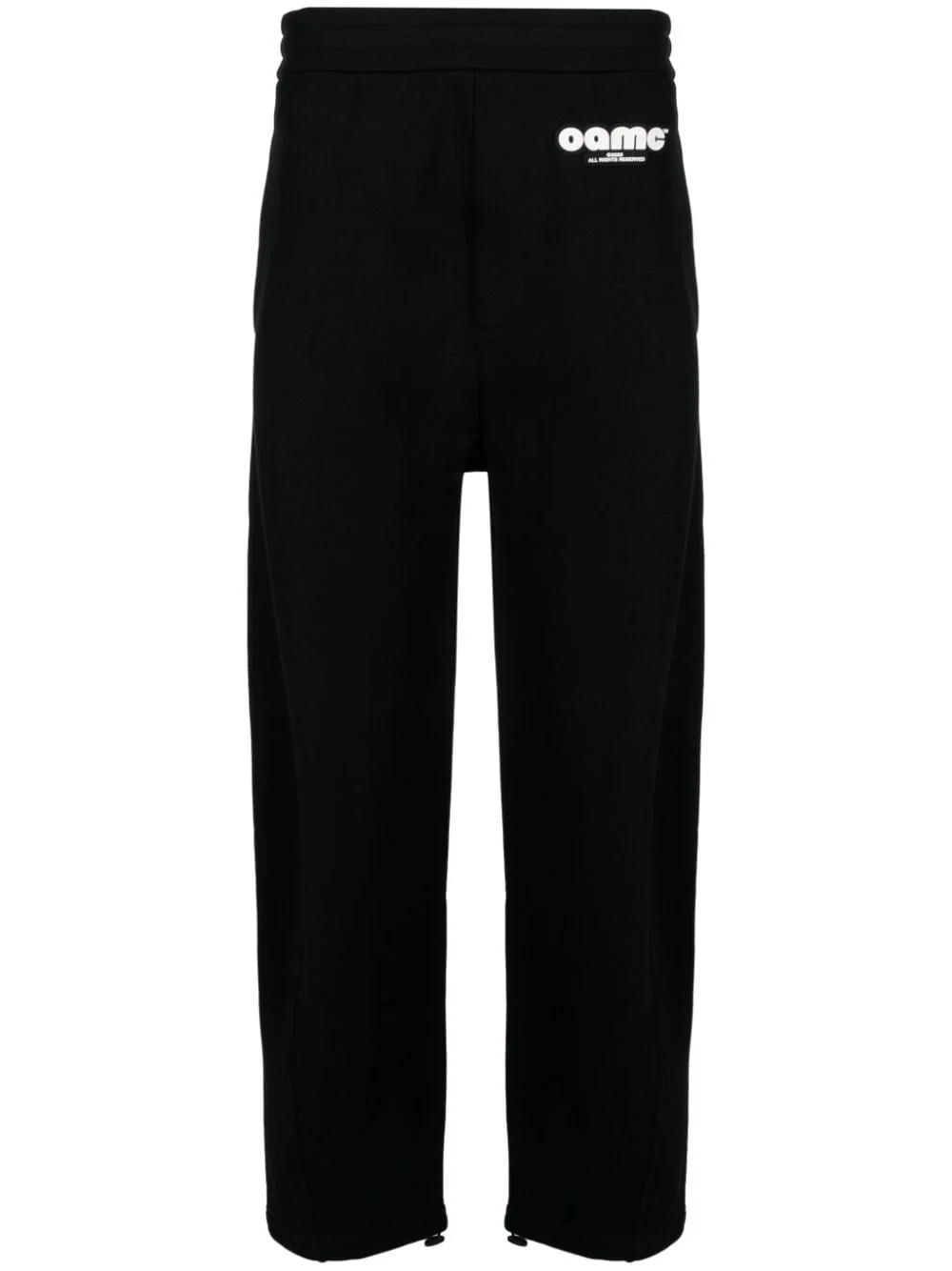 logo-patch track pants Highlights - Black - Cotton - Jersey texture - Elasticated waistband - Slip-on style - Straight leg - Two side slit pockets - Drawstring hem Imported Composition Cotton 100% SIZE & FIT Model measurements Height 6 ft 2 in(1.87 m) Bust/Chest 33.07 in(84 cm) Hips 35.43 in(90 cm) Waist 26.77 in(68 cm) FittingInformation Designed with a wide leg, offering a loose and roomy fit The internal drawstring at the hem allows for fitted preferences at the ankle Made from a midweight non-stretch fabric, this piece offers minimal elasticity when worn This piece fits true to size – take your usual size Washing instructions Machine Wash