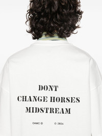 logo-print organic T-shirt Highlights - Off-white - Organic cotton - Jersey texture - Crew neck - Short sleeves - Drop shoulder - Short sleeves - Logo print at the chest and to the rear - Internal logo tag - Straight hem Imported Composition Organic Cotton 100% SIZE & FIT Model measurements Height 6 ft 1 in(1.85 m) Bust/Chest 36.22 in(92 cm) Hips 36.22 in(92 cm) Waist 27.55 in(70 cm) FittingInformation Designed to be unstructured, offering a loose fit throughout Made from a midweight non-stretch fabric, this piece offers minimal elasticity when worn This piece fits true to size – take your usual size