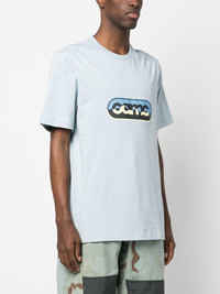 logo-print T-shirt powder blue cotton logo print at the chest logo print to the rear round neck short sleeves straight hem Imported Composition Cotton 100% SIZE & FIT Model measurements Height 6 ft 0 in(1.84 m) Bust/Chest 36.22 in(92 cm) Hips 35.43 in(90 cm) Waist 26.77 in(68 cm) Measurement CHEST 43.3 in(110 cm) LENGTH 28.74 in(73 cm) SLEEVE LENGTH 10.62 in(27 cm) Shoulder Width 18.11 in(46 cm) FittingInformation This piece fits true to size. We recommend you get your regular size Cut for a loose fit Made with a mid-weight fabric Washing instructions Machine Wash