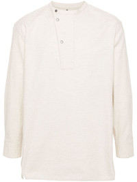 long-sleeve shirt Highlights - Ecru - Cotton-linen blend - Slub texture - Round neck - Long sleeves with pleat detailing - Press-stud fastening cuffs - Side slits - Straight hem - Front short press-stud fastening Made in Italy Composition Cotton 85%, Linen/Flax 15% SIZE & FIT Model measurements Height 6 ft 1 in(1.86 m) Bust/Chest 37.4 in(95 cm) Hips 36.22 in(92 cm) Waist 29.52 in(75 cm) FittingInformation Designed to be unstructured, offering a loose fit throughout Made from a midweight non-stretch fabric This piece fits true to size – take your usual size Washing instructions Machine Wash