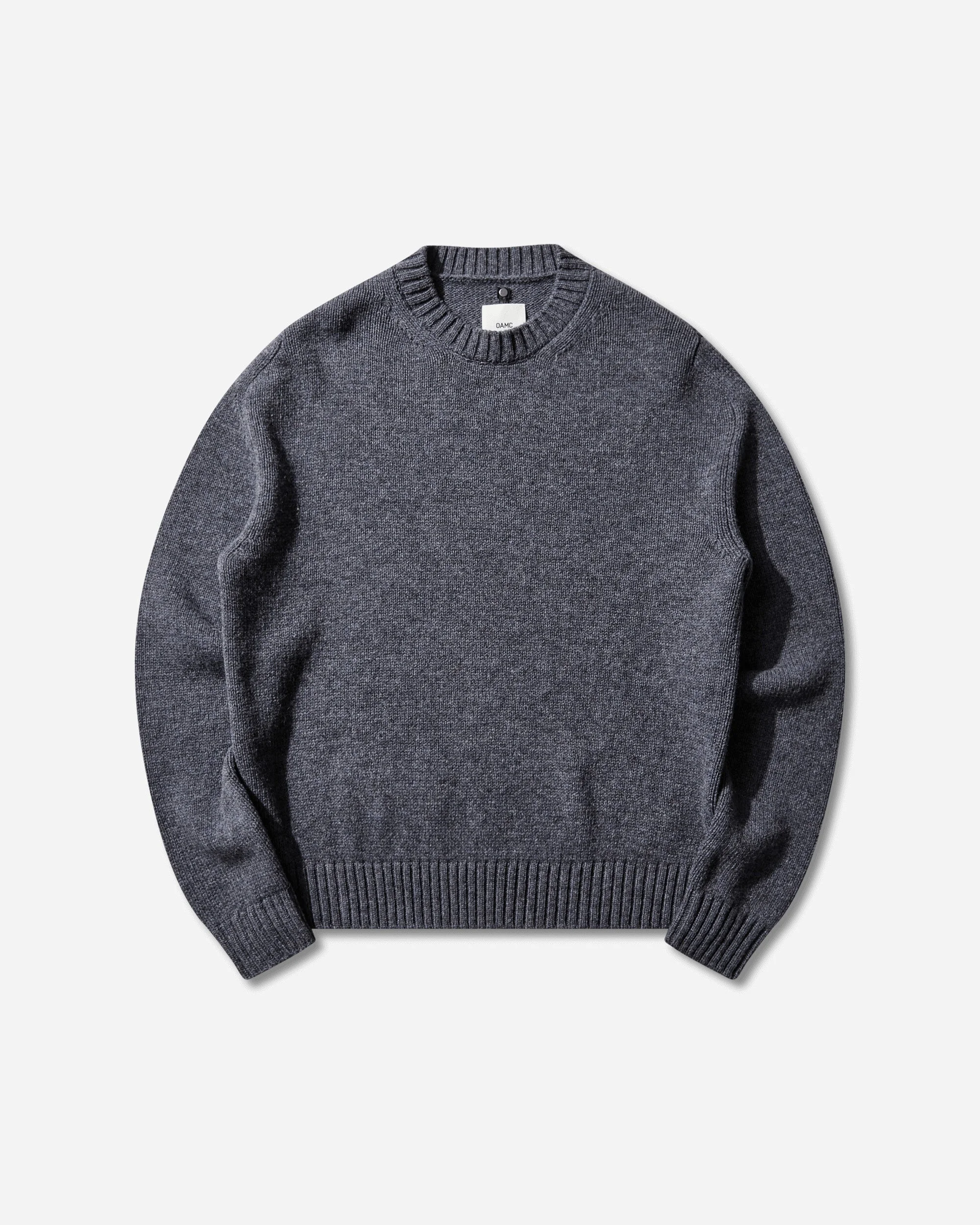 OAMC Whistler Crewneck Sweater Cloudberry From OAMC "Objective and Meticulously Curious" collection, the Whistler sweater is made from virgin wool and features a knitted logo on the back. - 94% Virgin Wool, 6% Cotton - Loose Fit - Ribbed Crewneck, Cuffs, and Hem - Jacquard Logo at Bottom Hem - Made in Italy - Style Code: OAF5MM08AP-FL004 560