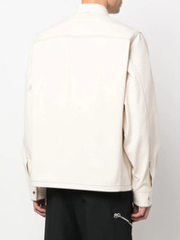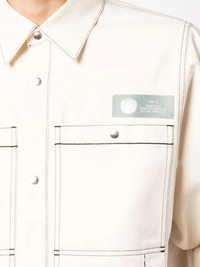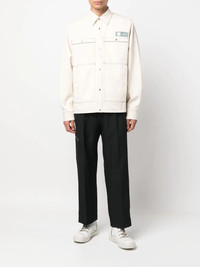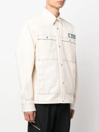 patch pocket shirt jacket cream white cotton contrast stitching silver-tone hardware pointed flat collar logo patch at the chest long sleeves two chest patch pockets two side slit pockets straight hem Made in Italy Composition Cotton 100% SIZE & FIT Model measurements Height 6 ft 1 in(1.85 m) Bust/Chest 35.82 in(91 cm) Hips 37.79 in(96 cm) Waist 29.13 in(74 cm) FittingInformation This piece fits true to size. We recommend you get your regular size Cut for a loose fit Made with a mid-weight non-stretch fabric Washing instructions Dry Clean Only