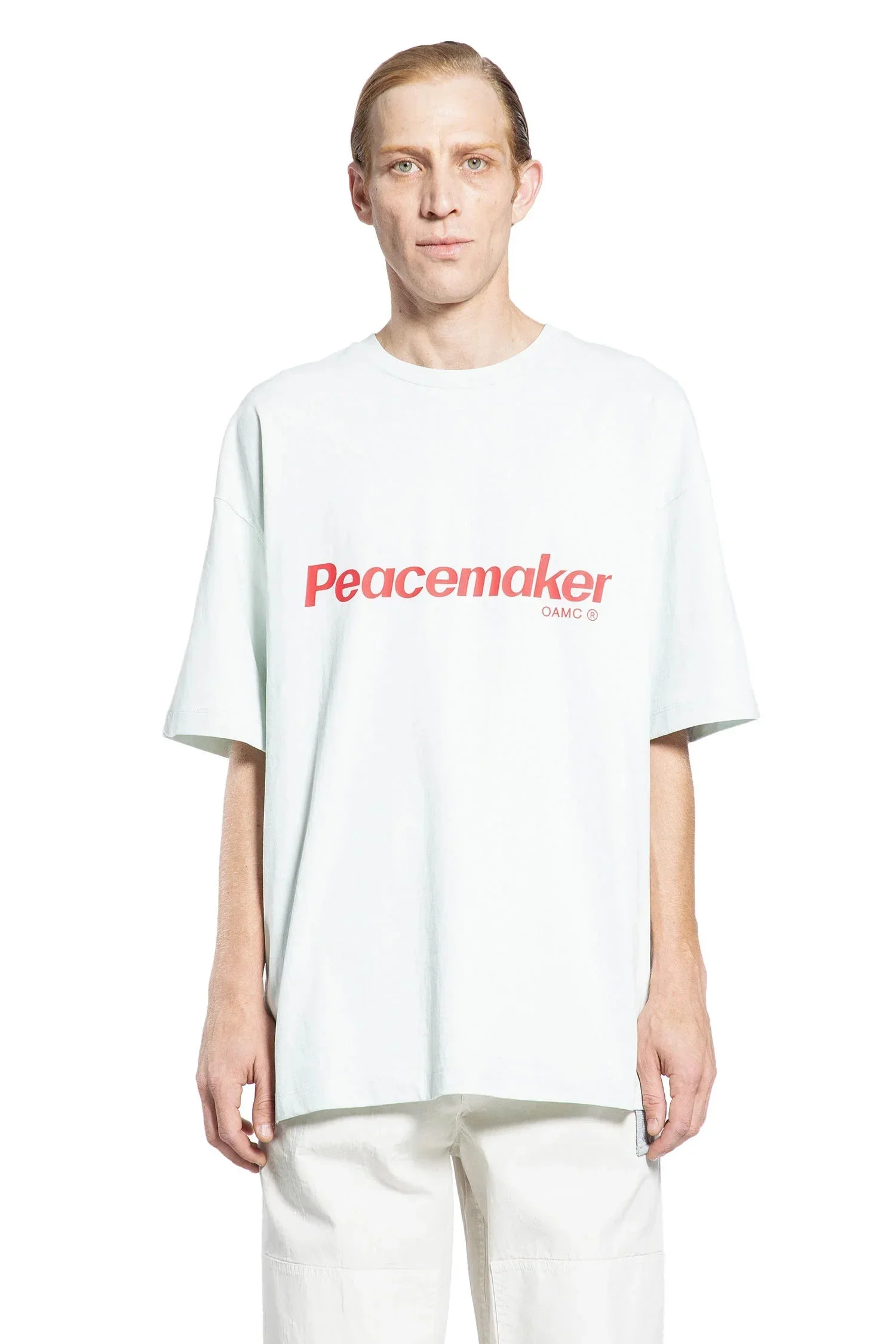 DESCRIPTION - Ice - Cotton jersey - Round neck - Front peacemaker print - Dropped shoulders - Short sleeves - Back seasonal flower print - Oversized fit DETAILS - Model code: PCM1OT02GJE002091 ICE - Item ID: 9519410118998 SIZE & FIT Model wears size M Model Height 186 cm Chest 88 cm Waist 74 cm Hips 93 cm