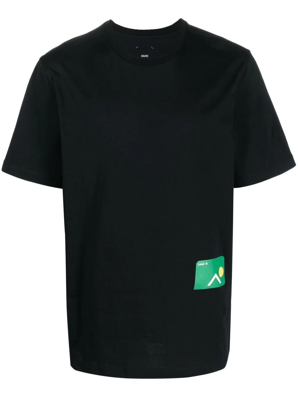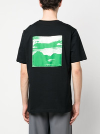 photograph-print short-sleeved T-shirt black/multicolour cotton/silk jersey knit logo print to the side photograph print crew neck short sleeves straight hem Imported Composition Silk 100%, Cotton 100% SIZE & FIT Model measurements Height 6 ft 3 in(1.91 m) Bust/Chest 37 in(94 cm) Hips 37.79 in(96 cm) Waist 28.34 in(72 cm) FittingInformation This piece fits true to size. We recommend you get your regular size Cut for a loose fit Made with a mid-weight fabric Washing instructions Hand Wash