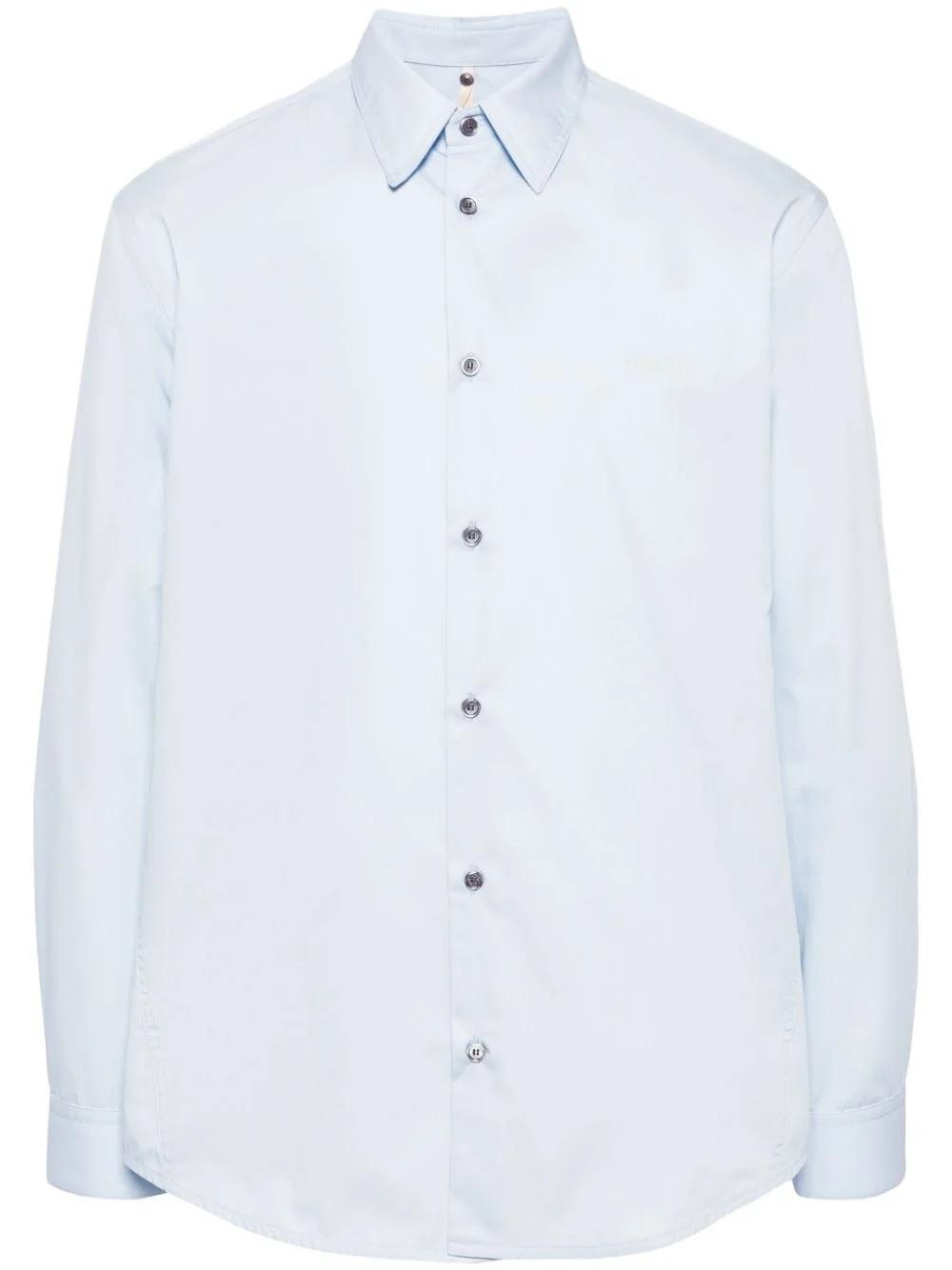 point-collar shirt Highlights - Light blue - Recycled polyester blend - Straight-point collar - Long sleeves - Buttoned cuffs - Front button fastening - Curved hem Imported Composition Outer: Recycled Polyester 65%, Cotton 35% Trims: Silk 100% SIZE & FIT Model measurements Height 6 ft 2 in(1.87 m) Bust/Chest 33.07 in(84 cm) Hips 35.43 in(90 cm) Waist 26.77 in(68 cm) FittingInformation Designed for a relaxed fit, this piece allows for comfort and movement when worn Constructed with additional length on the sleeve Made from a midweight non-stretch fabric This piece fits true to size – take your usual size