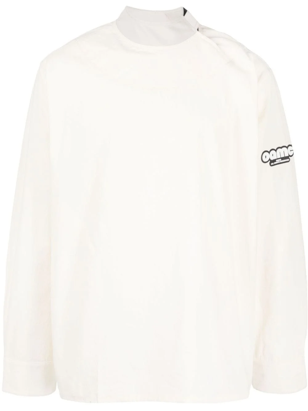 logo-patch cotton shirt Highlights - Cream white - Cotton - Logo patch to the side - Band collar - Button fastening at the shoulder - Long sleeves - Straight hem Made in Italy Composition Body: Cotton 100% SIZE & FIT Model measurements Height 6 ft 2 in(1.87 m) Bust/Chest 31.49 in(80 cm) Hips 37.79 in(96 cm) Waist 27.95 in(71 cm) FittingInformation Designed for an oversized fit, offering additional room throughout Made from a lightweight non-stretch fabric This piece fits true to size – take your usual size Washing instructions Hand Wash