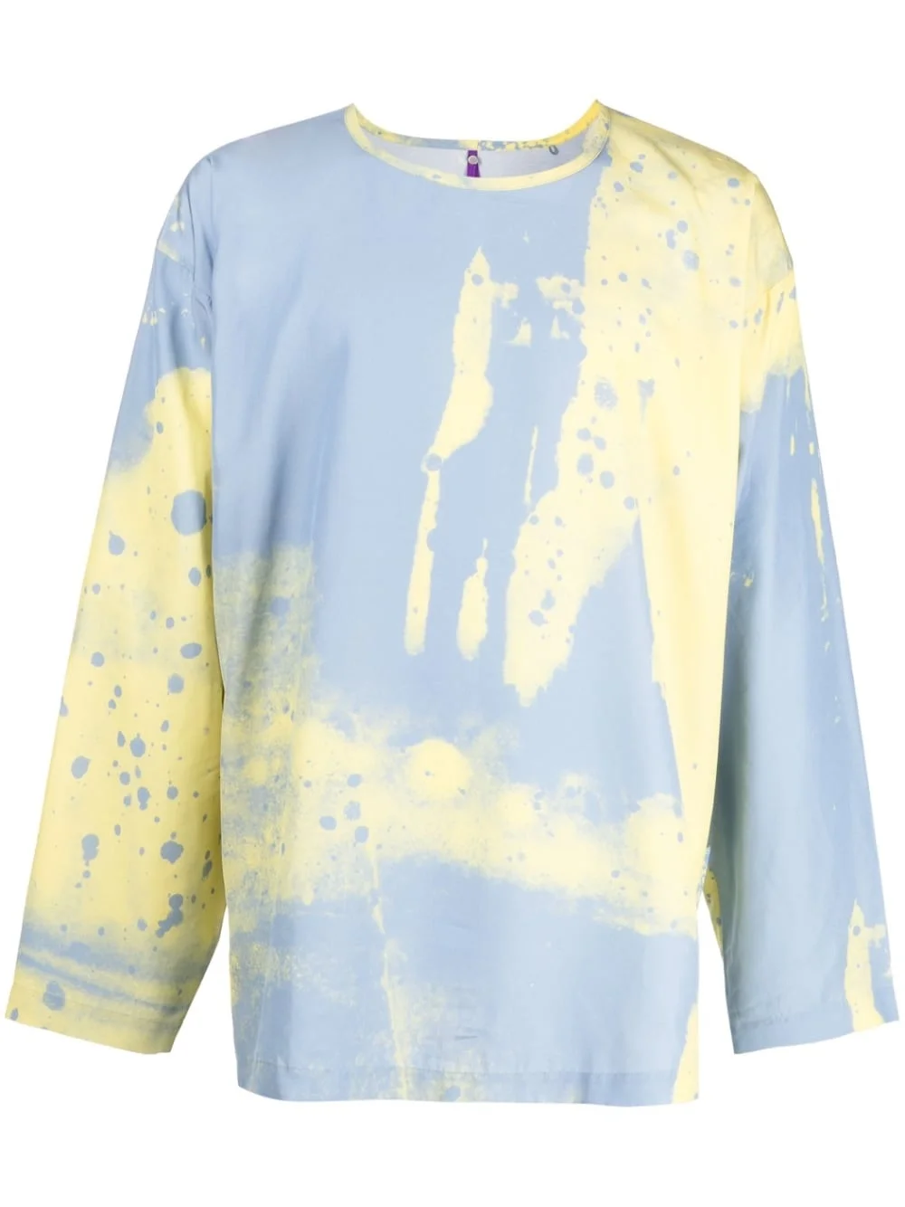 waistband-detail wide-sleeve top light yellow/light blue tie-dye pattern logo patch to the rear round neck drop shoulder long wide sleeves rear elasticated waistband Made in Italy Composition Body: Viscose 100% SIZE & FIT Model measurements Height 6 ft 2 in(1.87 m) Bust/Chest 36.22 in(92 cm) Hips 37.79 in(96 cm) Waist 28.34 in(72 cm) FittingInformation Designed for an oversized fit, offering additional room throughout Made from a lightweight non-stretch fabric This piece fits true to size – take your usual size