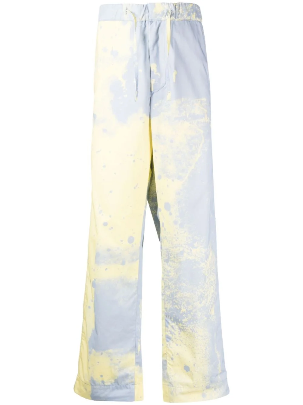 spray-paint straight-leg trousers Highlights - Light yellow/light blue - Cotton - Spray-paint effect - Logo patch to the rear - Straight leg - Elasticated drawstring waistband - Rear patch pocket Imported Composition Body: Cotton 100% SIZE & FIT Model measurements Height 6 ft 2 in(1.87 m) Bust/Chest 36.22 in(92 cm) Hips 37.79 in(96 cm) Waist 28.34 in(72 cm) FittingInformation Designed for a straight-leg, allowing for an unrestricted and comfortable fit over the leg The elasticated waist allows for a comfortable fit Made from a midweight non-stretch fabric This piece fits true to size – take your usual size Washing instructions Machine Wash