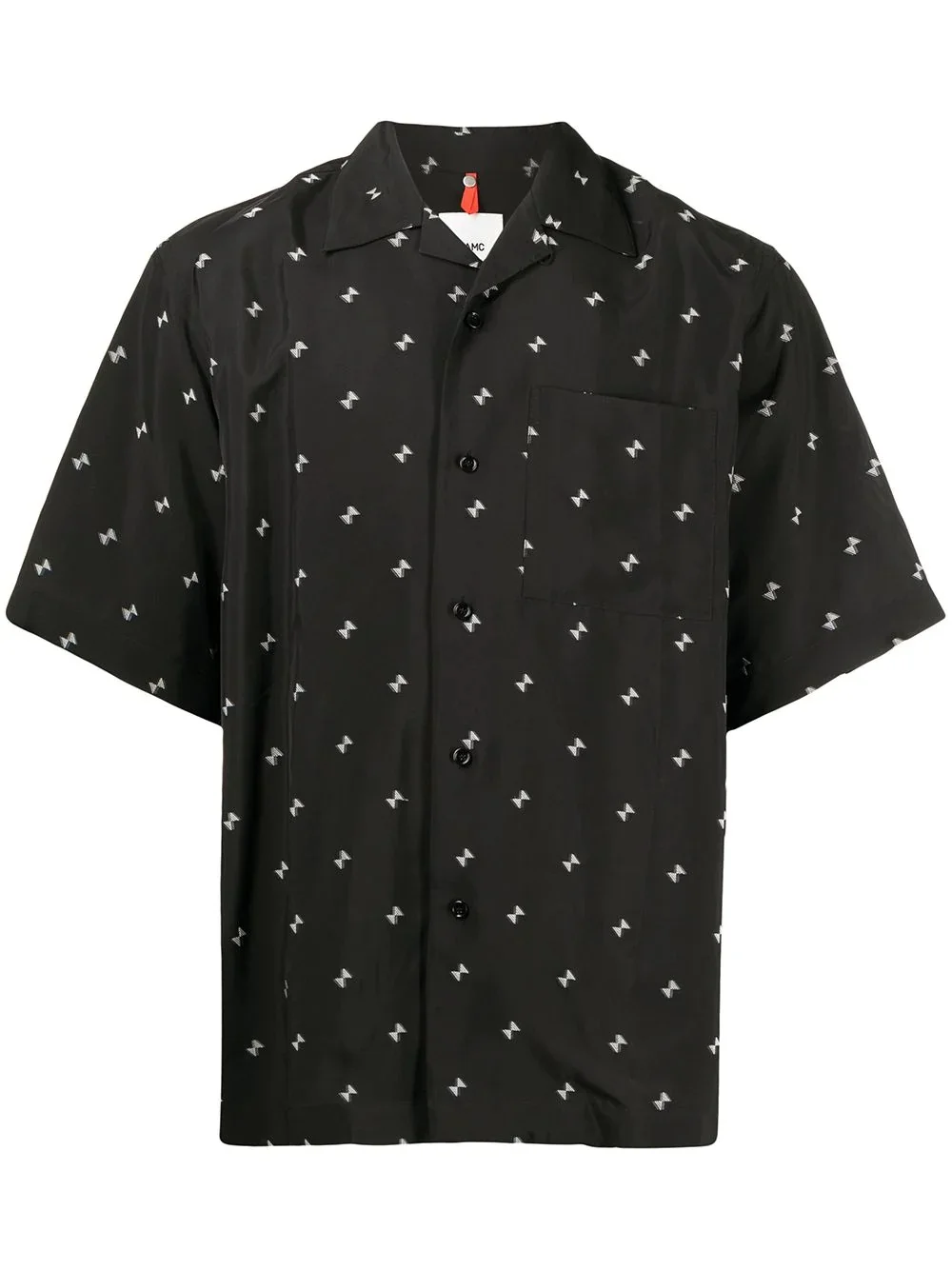 triangle-print shirt black triangle logo spread collar front button fastening short sleeves chest patch pocket Made in Italy Composition Body: Viscose 99%, Polyester 1% SIZE & FIT Model measurements Height 6 ft 1 in(1.85 m) Bust/Chest 35.03 in(89 cm) Hips 36.22 in(92 cm) Waist 29.52 in(75 cm) FittingInformation This piece fits true to size. We recommend you get your regular size Cut for a loose fit Made with a mid-weight non-stretch fabric Washing instructions Machine Wash