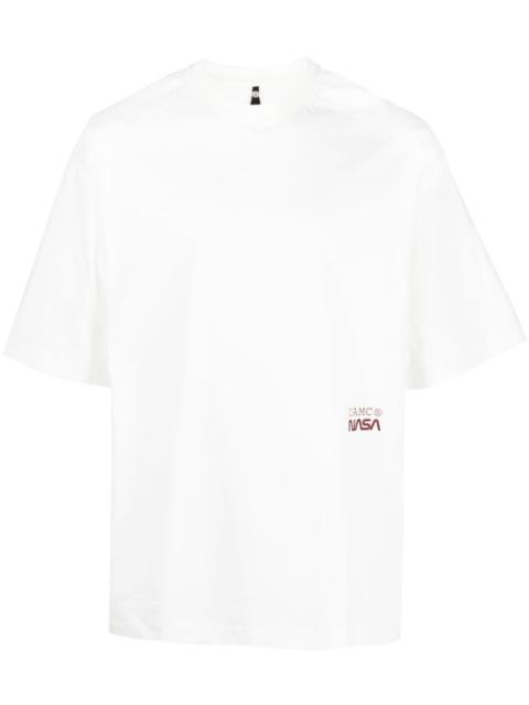 x Nasa graphic-print T-shirt black logo print to the front graphic print to the rear crew neck drop shoulder short sleeves straight hem Made in Italy Composition Organic Cotton 100%, Cotton 95%, Elastane 5% SIZE & FIT Model measurements Height 6 ft 2 in(1.88 m) Bust/Chest 36.61 in(93 cm) Hips 35.82 in(91 cm) Waist 27.95 in(71 cm) Washing instructions Machine Wash