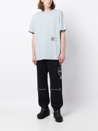 x Nasa multi-patch track pants black recycled polyamide blend patch detail elasticated waistband elasticated ankles two side inset pockets two zip-fastening pockets rear patch pocket Made in Italy Composition Body: Recycled Polyamide 84%, Polyamide 16% SIZE & FIT Model measurements Height 6 ft 2 in(1.87 m) Bust/Chest 36.22 in(92 cm) Hips 37.79 in(96 cm) Waist 28.34 in(72 cm) FittingInformation Designed for a straight-leg, allowing for an unrestricted and comfortable fit over the leg The elasticated hem at the ankle allows for movement and a comfortable fit Made from a midweight non-stretch fabric, this piece offers minimal elasticity when worn This piece fits true to size – take your usual size Washing instructions Hand Wash