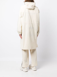 zip-up hooded parka cream white recycled polyester water-repellent logo patch at the chest classic hood press-stud fastening collar front two-way zip fastening long sleeves elasticated cuffs two side zip-fastening pockets drawstring hem below-knee length Made in Italy Composition Body: Recycled Polyester 100% SIZE & FIT Model measurements Height 6 ft 2 in(1.87 m) Bust/Chest 36.22 in(92 cm) Hips 37.79 in(96 cm) Waist 28.34 in(72 cm) FittingInformation Designed to be unstructured, offering a loose fit throughout The adjustable drawstring means that you can adjust this piece’s fit to suit your comfort and preference Made from a midweight non-stretch fabric, this piece offers minimal elasticity when worn This piece fits true to size – take your usual size