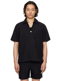 Plain-woven cotton polo. Jacquard graphic pattern throughout. · Spread collar · Three-button placket · Patch pocket at chest · Tennis-tail hem Supplier color: Nero 100% cotton. Made in Portugal 251037M192017